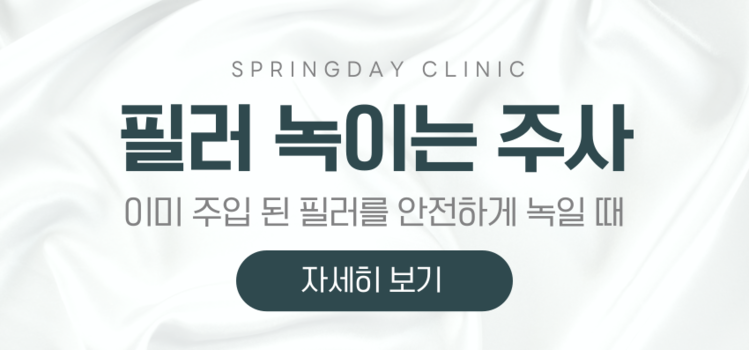시술 후 주의사항 1. 필러에는 녹는 필러/녹지 않는 필러가 있기 때문에 시술받았던 필러 종류를 미리 확인해주세요. 2. 개인에 따라 붉음증, 알러지 반응이 나타날 수 있기 때문에 약복용이나 주사 치료 진행될 수 있습니다. 3. 개인에 따라 녹는 데 걸리는 시간이 다를 수 있으므로, 주사한 부위 마사지 충분히 해주세요. |